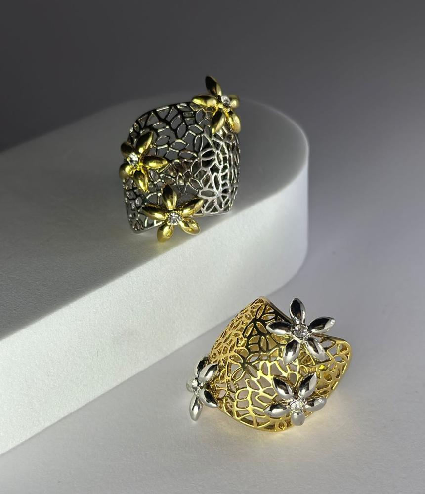 - مدمج بثلاث وردات لون ذهبي مرصعة بفصوص دامعة .